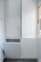 Muebles lacados con uñero integrado en color blanco acabado brillo.