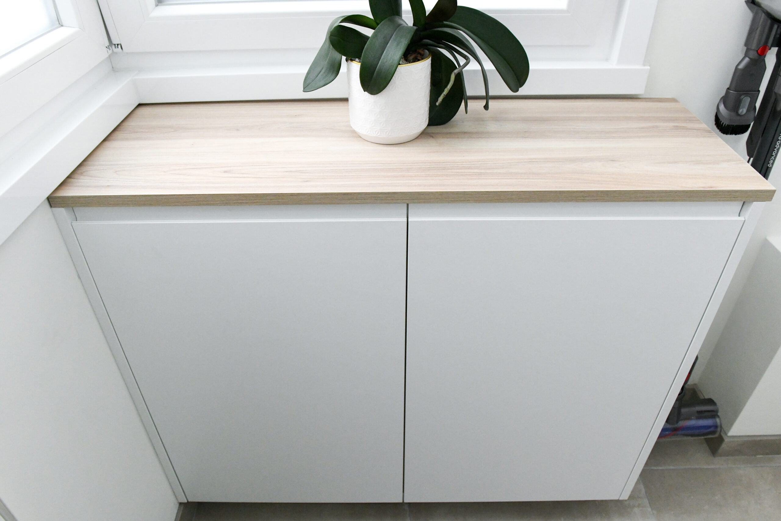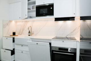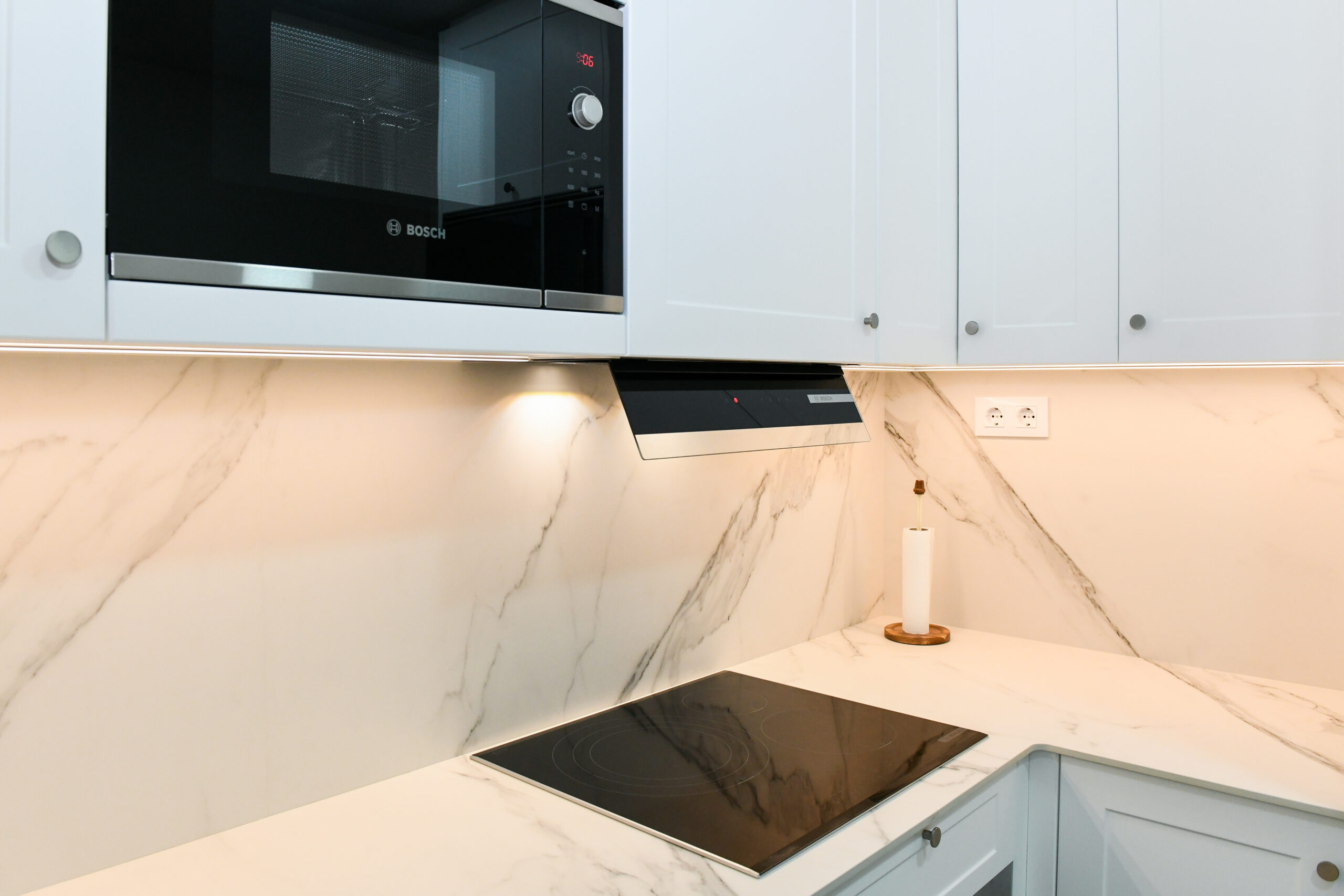 Iluminación led con intensidad regulable, bajo muebles altos.