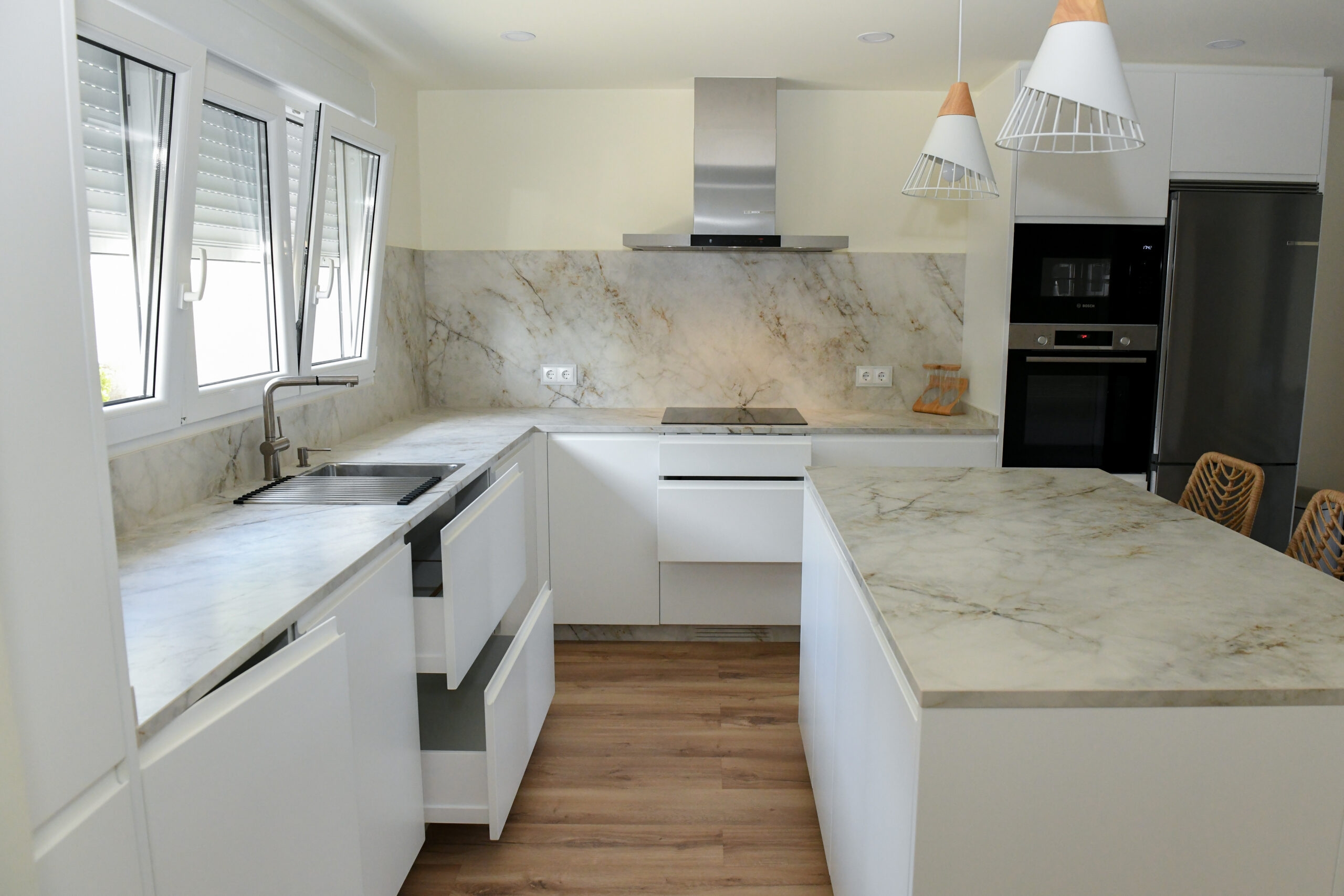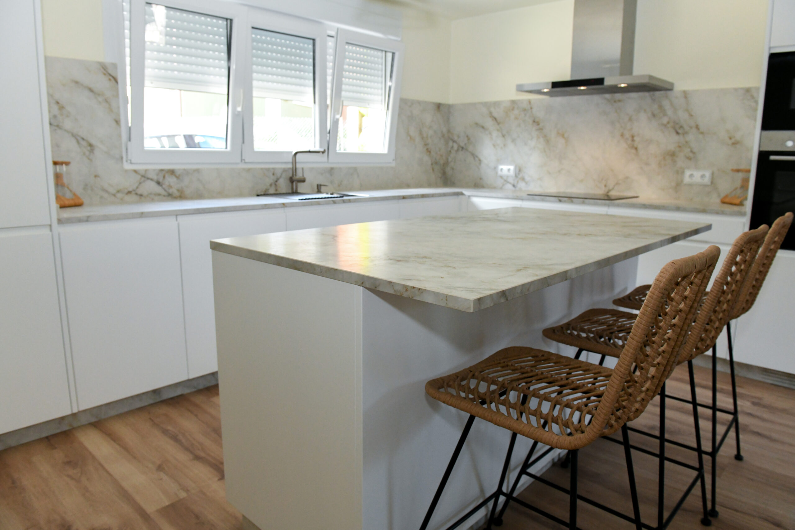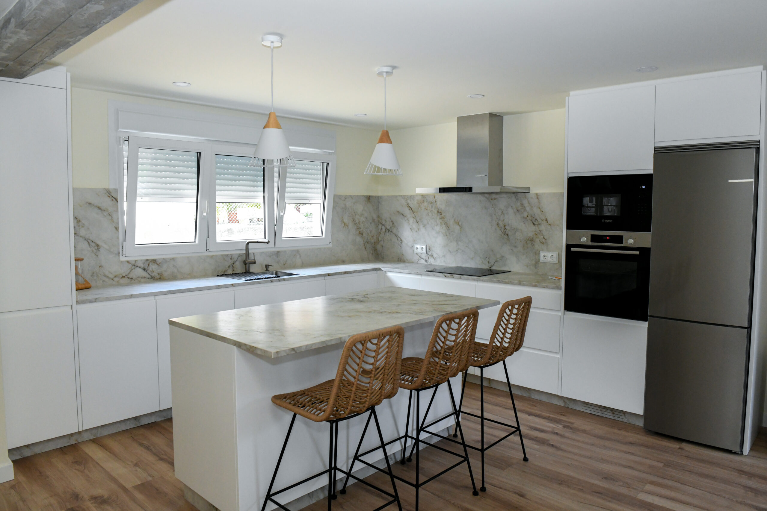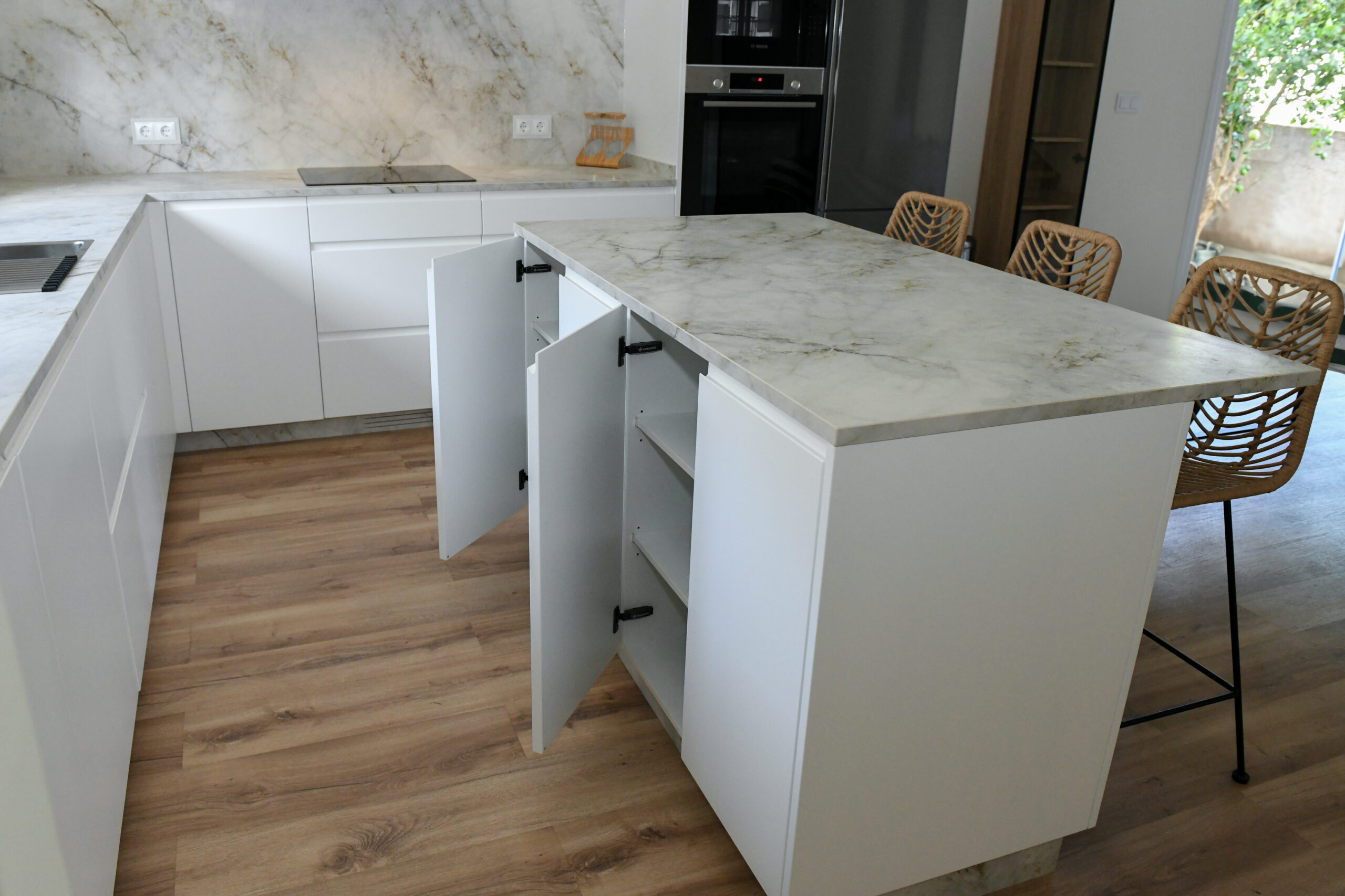 En este proyecto se ha realizado la instalación de cocina en L, con una isla central.