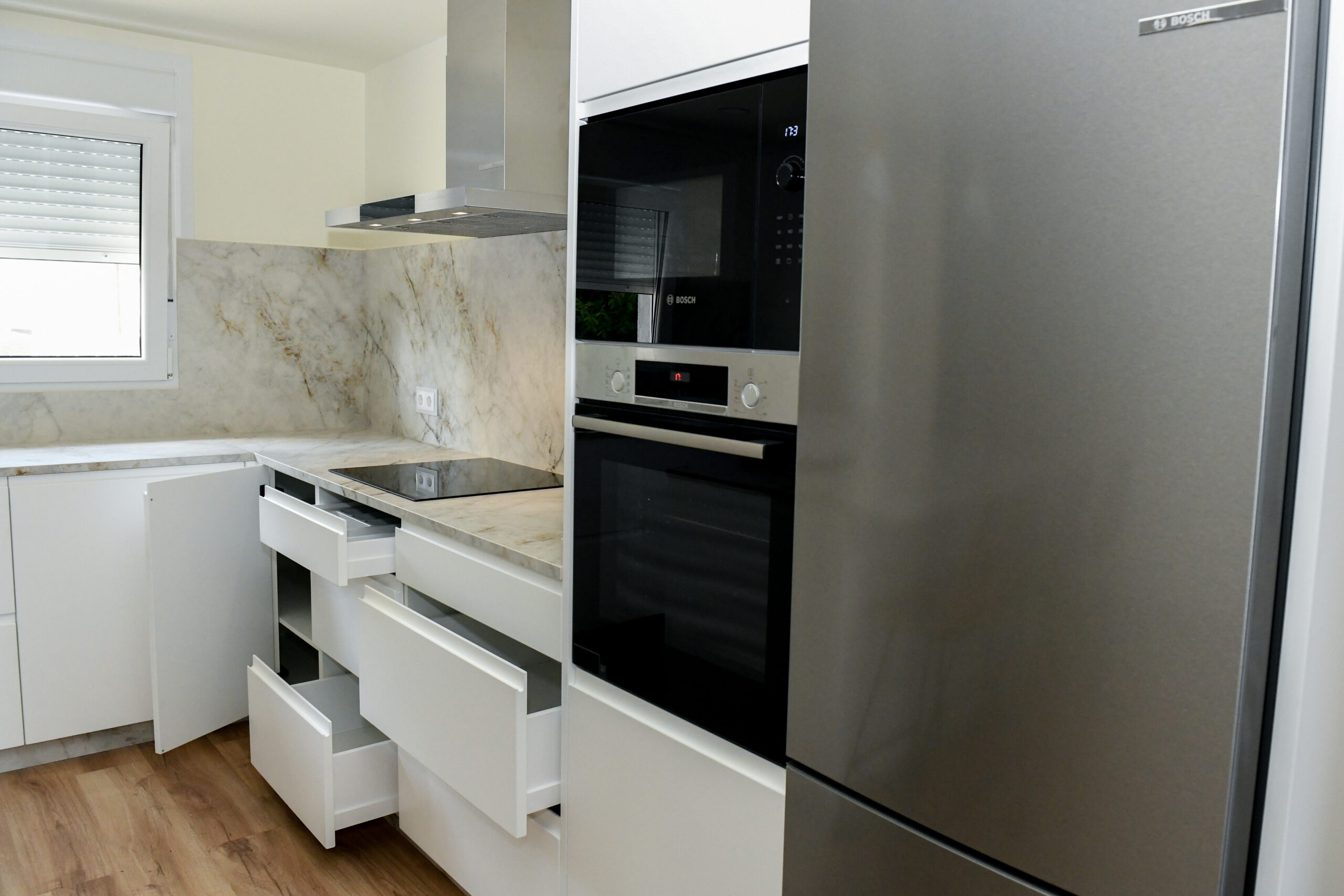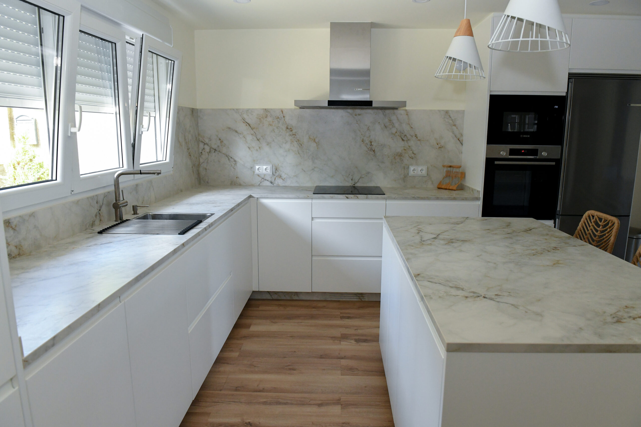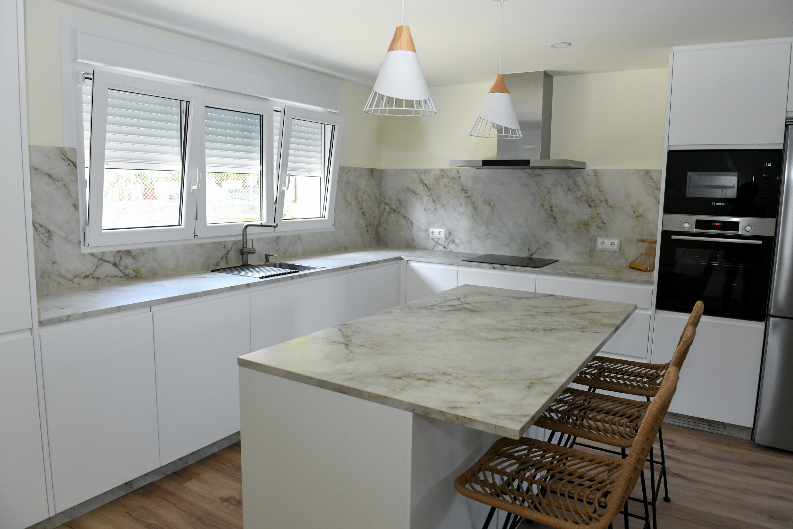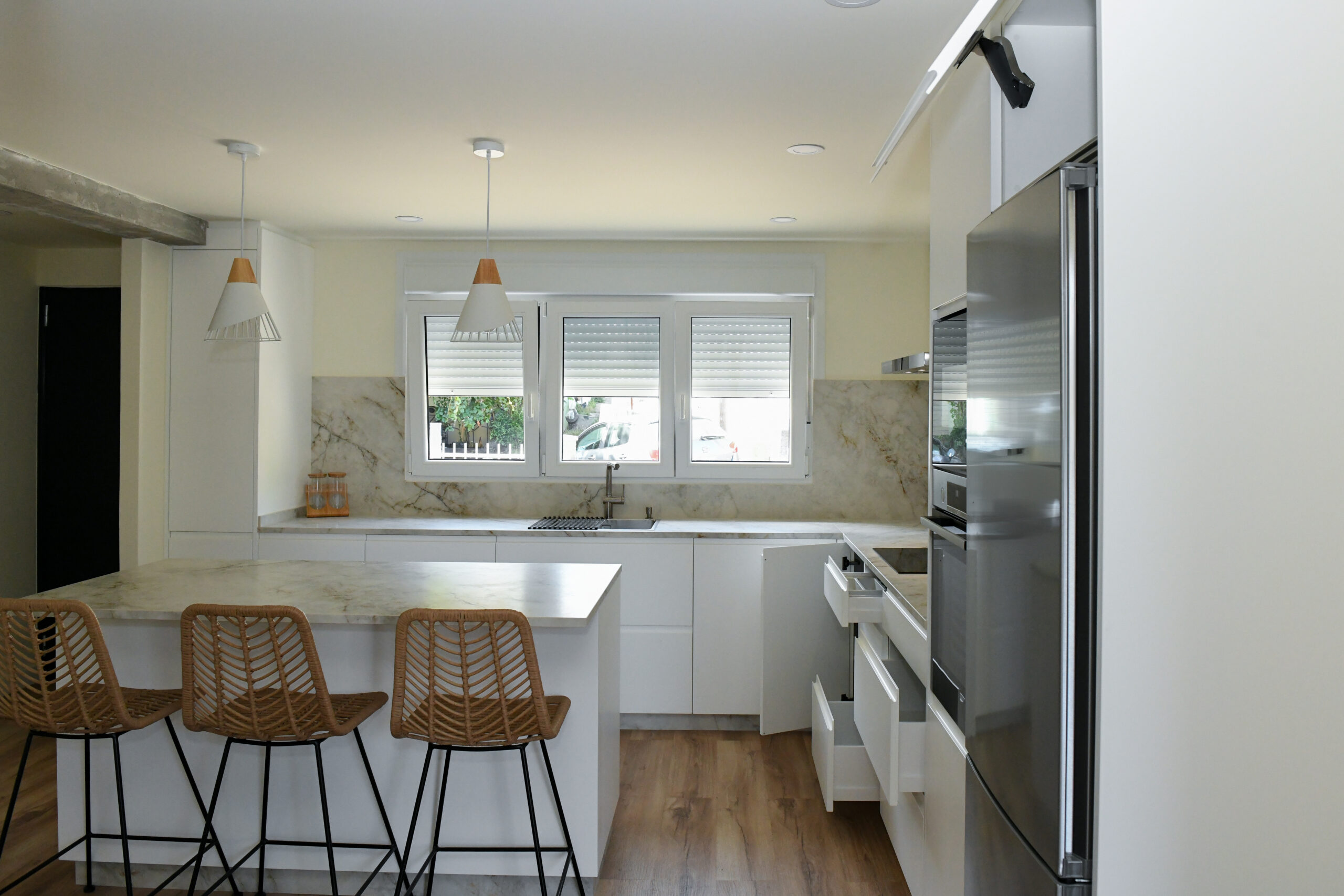 En este proyecto se ha realizado la instalación de cocina en L, con una isla central.
